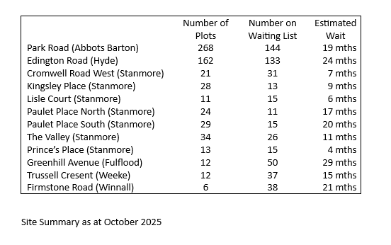 We have 12 allotment sites in Winchester with over 600 plots and 400 members